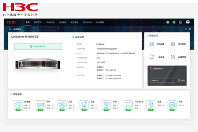 H3C HDM新華三服務(wù)器硬件設(shè)備管理系統(tǒng)(Hardware Device Management,以下簡(jiǎn)稱HDM)是新華三服務(wù)器內(nèi)置的軟硬件一體的嵌入式管理系統(tǒng),提供對(duì)服務(wù)器硬件設(shè)備的全生命周期的監(jiān)、管、控,能幫助客戶實(shí)現(xiàn)更智能的服務(wù)器運(yùn)維和更高效的全生命周期管理。產(chǎn)品特性安全可靠運(yùn)維高效開放敏捷硬件上具有雙固件鏡像備份和多種形式的硬...